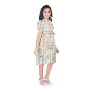 Generic Girl’s Digital Knitted Printed Half Sleeve Close Neck Dress (Light Green)