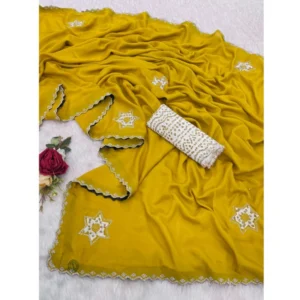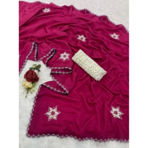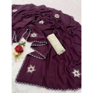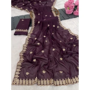 Women’s Georgette Embroidered Saree With Unstitched Blouse 5.5Mtr
