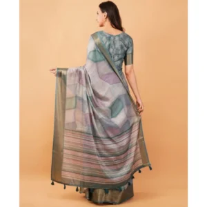 Women’s Linen Cotton Printed Ready To Wear With Pocket Saree With Unstitched Blouse 5.5 Mtr