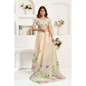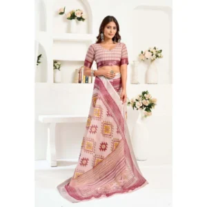 Women’s Linen Cotton Printed Ready To Wear Saree With Unstitched Blouse 5.5 Mtr