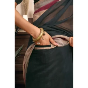 Women’s Linen Cotton Plain Ready To Wear With Pocket Saree With Unstitched Blouse 5.5 Mtr
