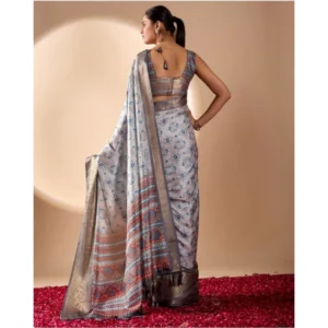 Women’s Silk_Blend Printed Saree With Unstitched Blouse 5.5Mtr