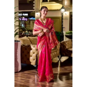 Women’s Silk Blend Paithani Weaving Saree With Unstitched Blouse