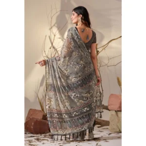 Women’s Faux_Linen Printed Saree With Unstitched Blouse 5.5Mtr