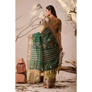 Women’s Faux_Linen Printed Saree With Unstitched Blouse 5.5Mtr