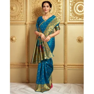 Women’s Silk Blend Zari Weaving Saree With Unstitched Blouse