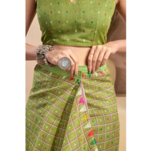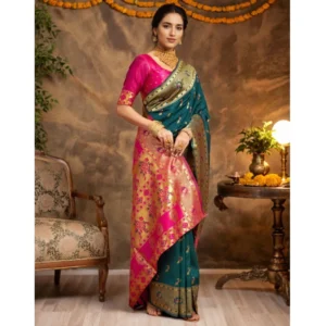 Women’s Silk Blend Zari Weaving Saree With Unstitched Blouse