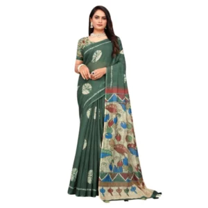 Women’s Linen Printed Saree With Unstitched Blouse 5.5Mtr