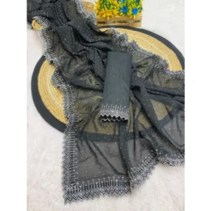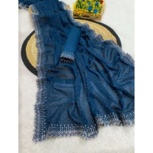 Women’s Georgette Stone Work Saree With Unstitched Blouse 5.5Mtr
