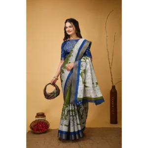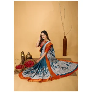 Women’s Soft Dola Cotton Kalamkari Printed Saree With Unstitched Blouse