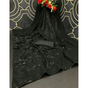 Women’s Georgette Embellished Sequnece Bollywood Saree With Unstitched Blouse 5.5Mtr