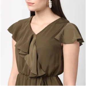 Women’s Polyester Ruffled Cap Sleeve Knee-Length Dress