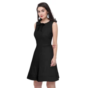 Women’s Polyester Solid Round Neck Sleeveless Dress