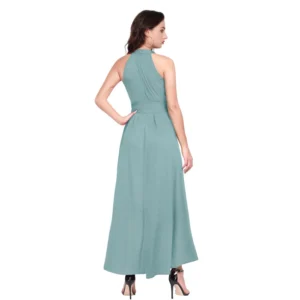 Women’s Polyster Solid Halter Neck Sleeveless Dress