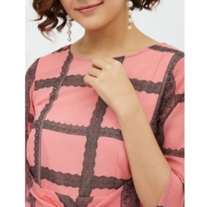 Women’s Polyester Checkered 3-4th Sleeves Below Knee Dress