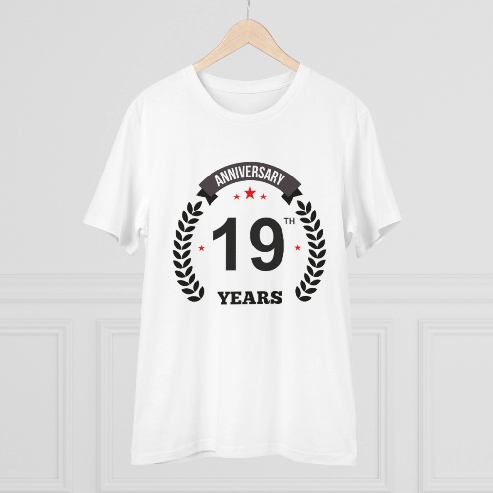 Generic Men's PC Cotton 19th Anniversary Printed T Shirt (Color: White, Thread Count: 180GSM)Generic Men’s PC Cotton 19th Anniversary Printed T Shirt (Color: White, Thread Count: 180GSM)