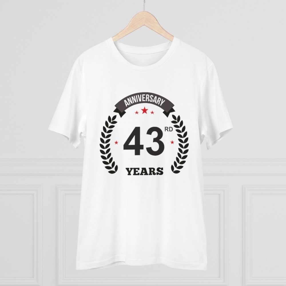 Generic Men’s PC Cotton 43rd Anniversary Printed T Shirt (Color: White, Thread Count: 180GSM)