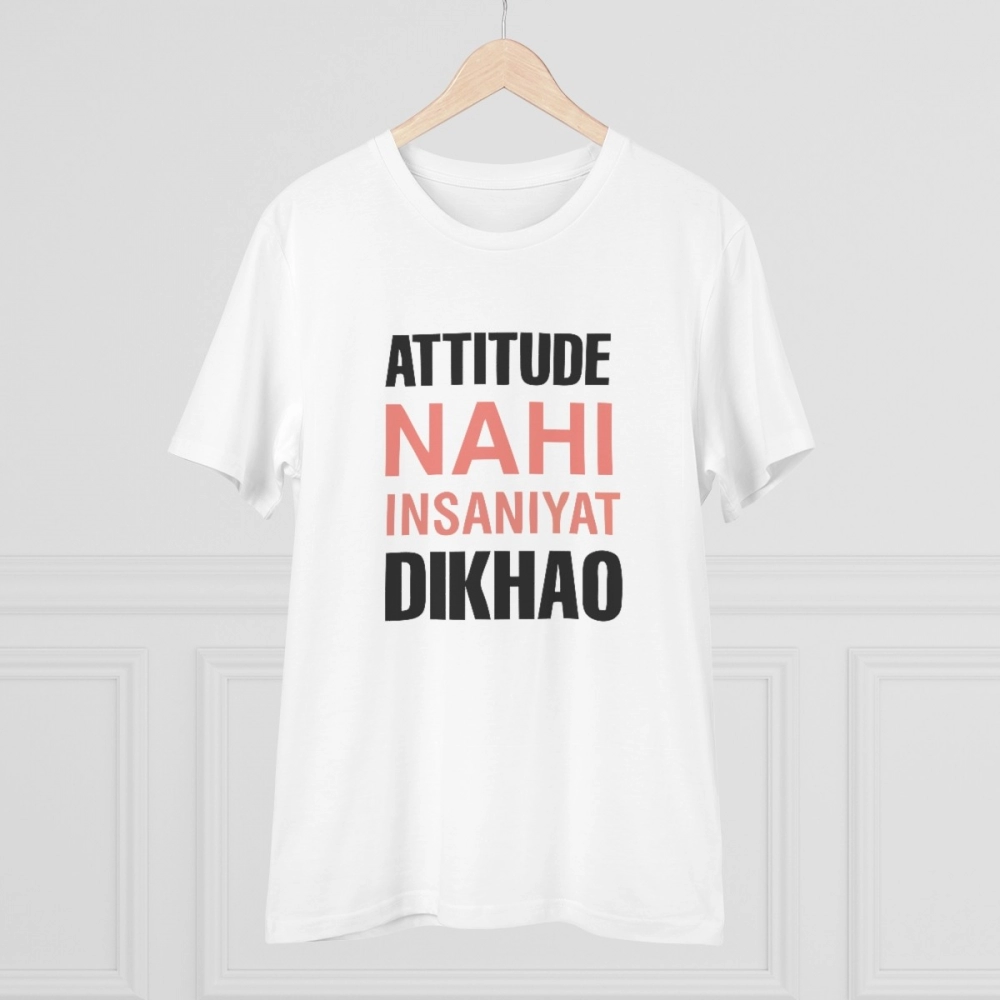 Men’s PC Cotton Attitude Nahi Insaniyat Dikhao Printed T Shirt (Color: White, Thread Count: 180GSM)
