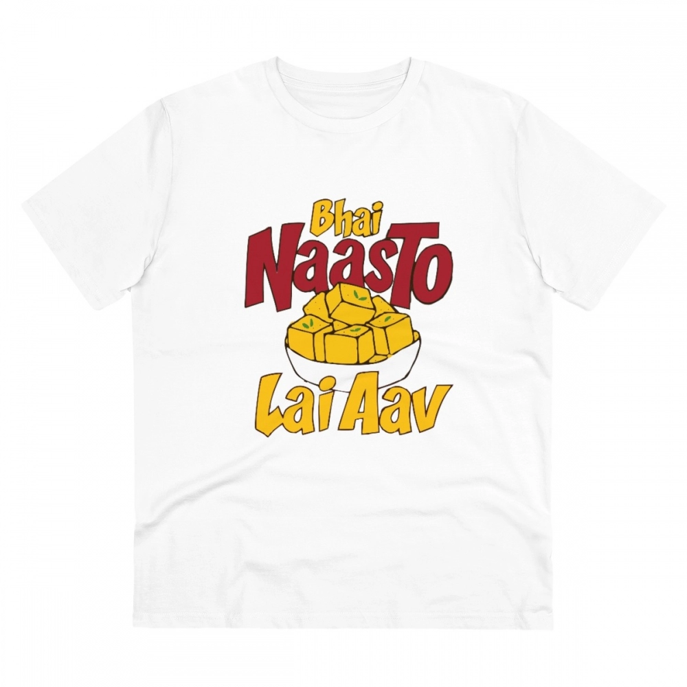 Generic Men’s PC Cotton Bhai Nasto Lai Aav Printed T Shirt (Color: White, Thread Count: 180GSM)