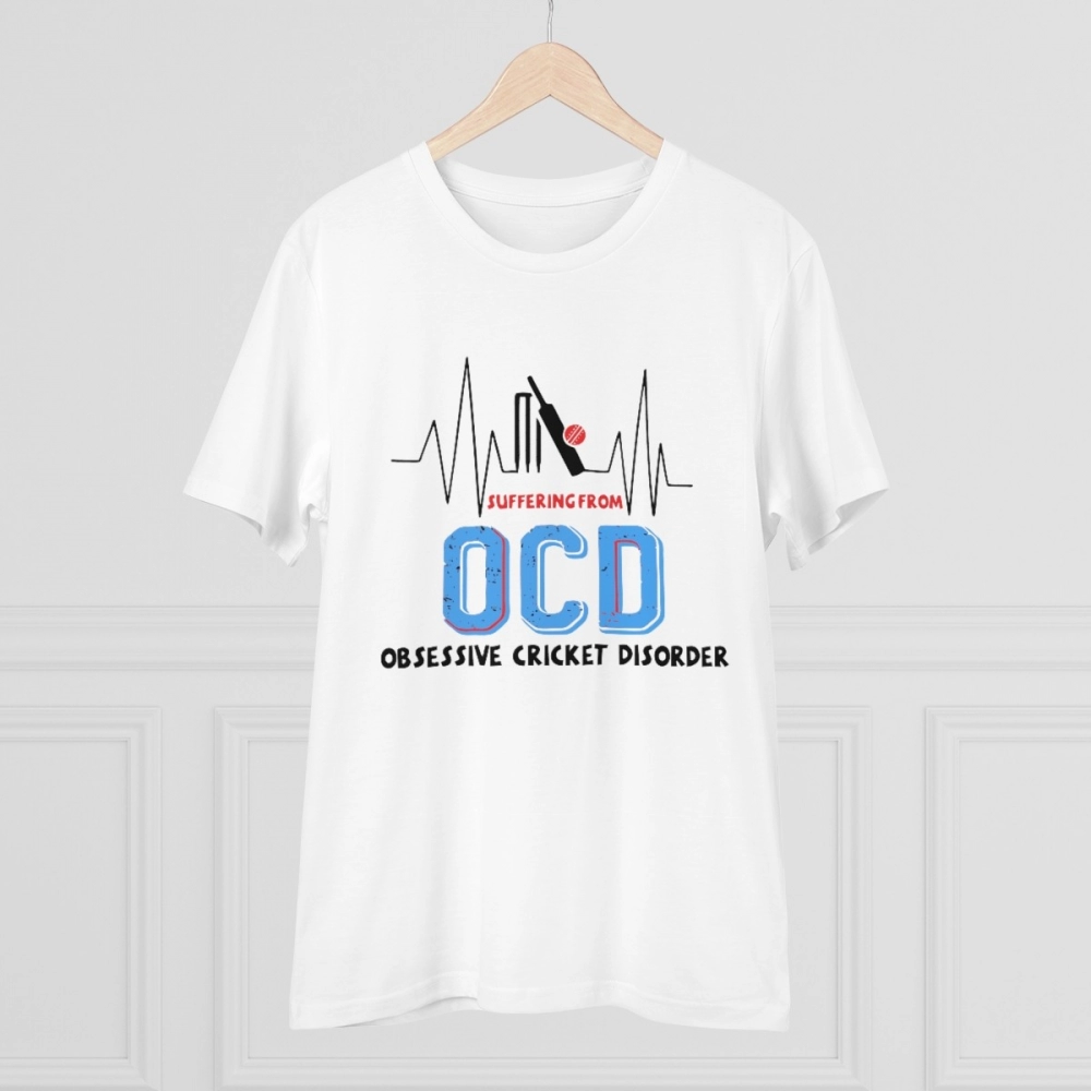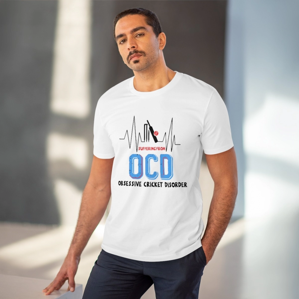 Men’s PC Cotton Cricket Design Printed T Shirt (Color: White, Thread Count: 180GSM)
