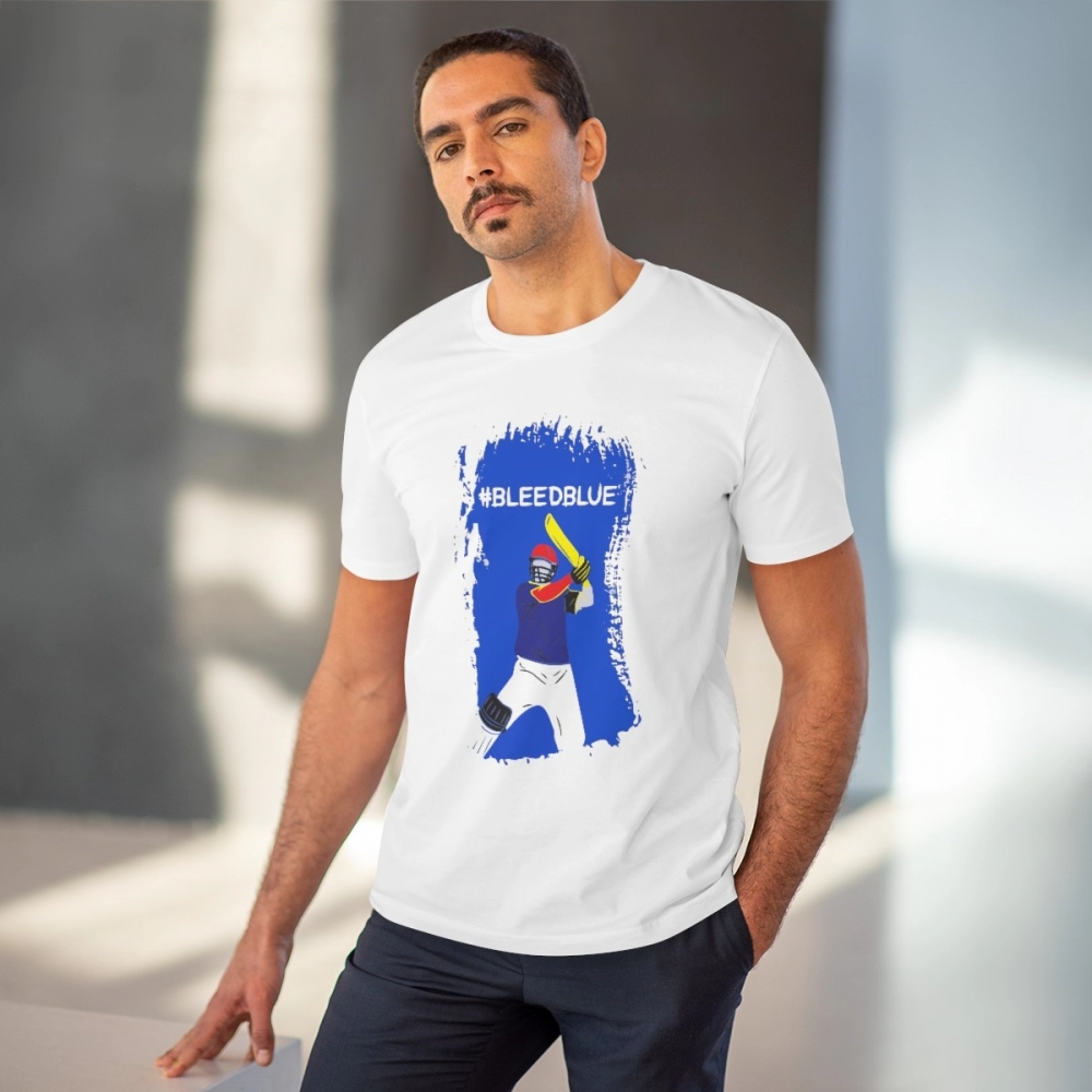 Men’s PC Cotton Cricket Design Printed T Shirt (Color: White, Thread Count: 180GSM)