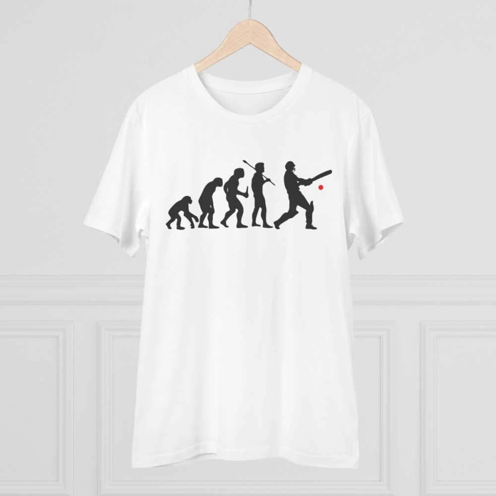 Men’s PC Cotton Cricket Design Printed T Shirt (Color: White, Thread Count: 180GSM)