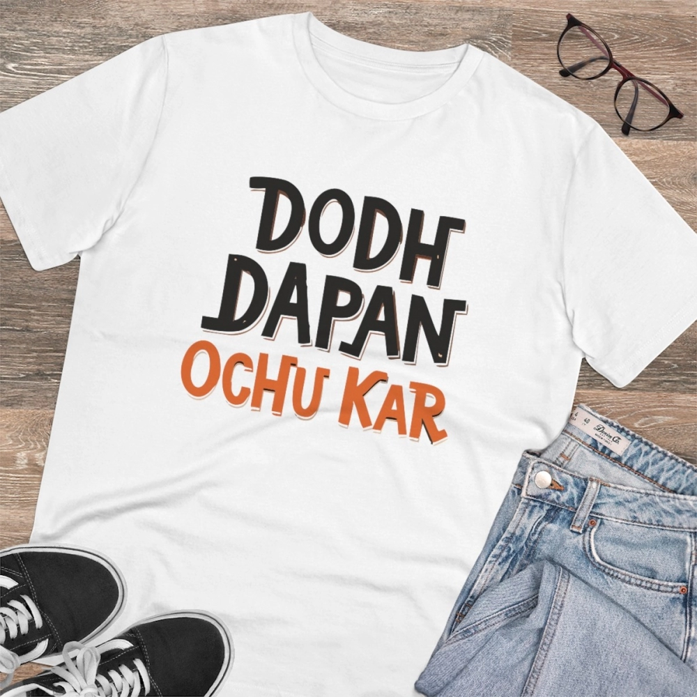 Generic Men’s PC Cotton Dodh Dapan Ochu Kar Printed T Shirt (Color: White, Thread Count: 180GSM)