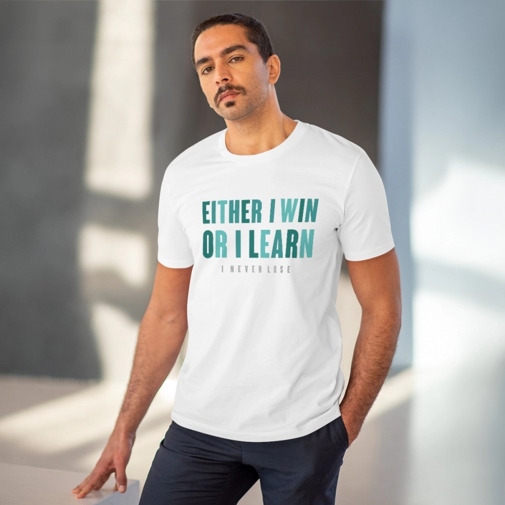 Generic Men’s PC Cotton Either I Win Or I Learn Printed T Shirt (Color: White, Thread Count: 180GSM)