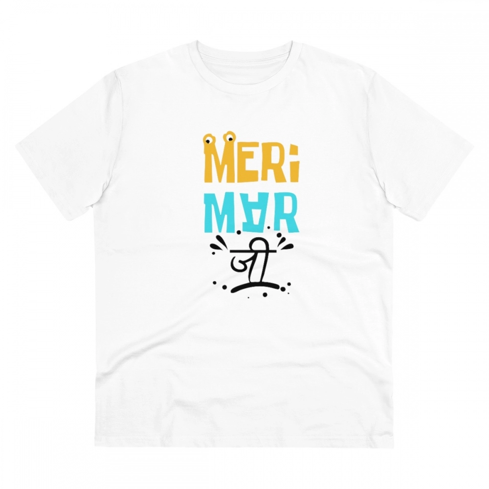 Generic Men’s PC Cotton Meri Marji Printed T Shirt (Color: White, Thread Count: 180GSM)