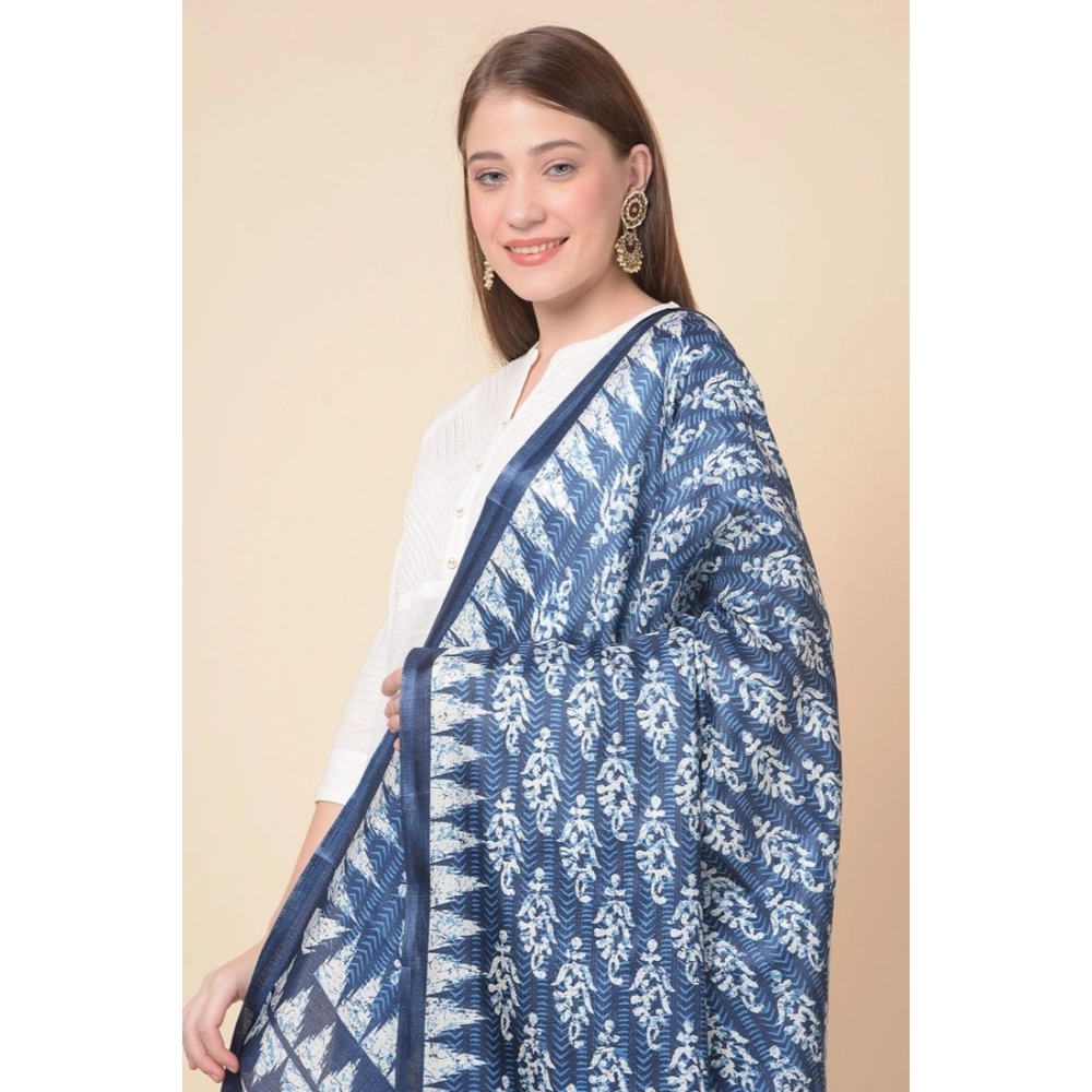 Generic Women’s Art Silk Printed Dupatta (Blue, Length: 2.25 to 2.50 Mtr)