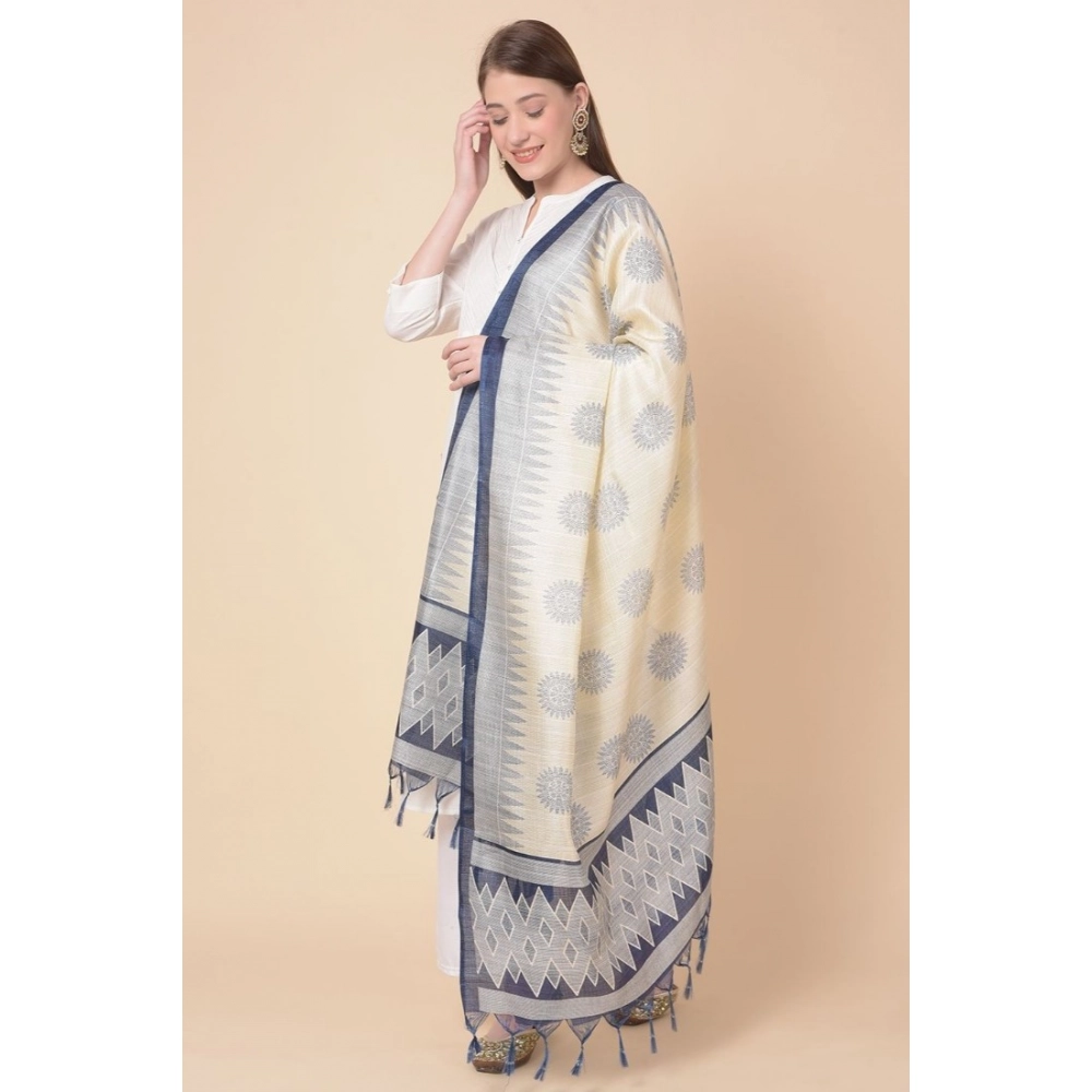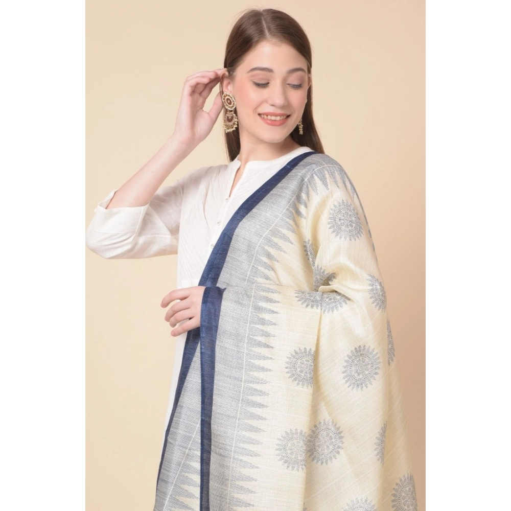 Generic Women’s Art Silk Printed Dupatta (Blue, Length: 2.25 to 2.50 Mtr)
