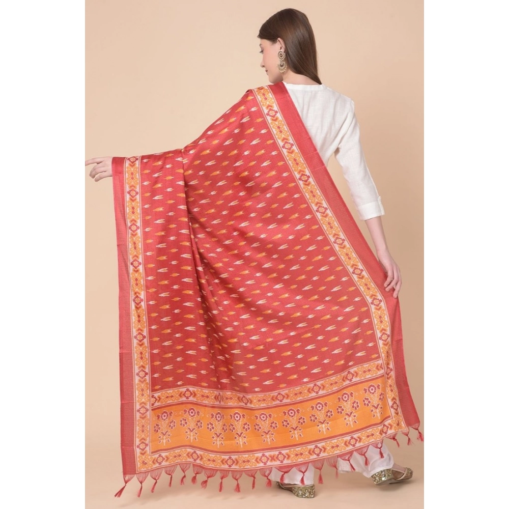 Generic Women’s Art Silk Printed Dupatta (Red, Length: 2.25 to 2.50 Mtr)