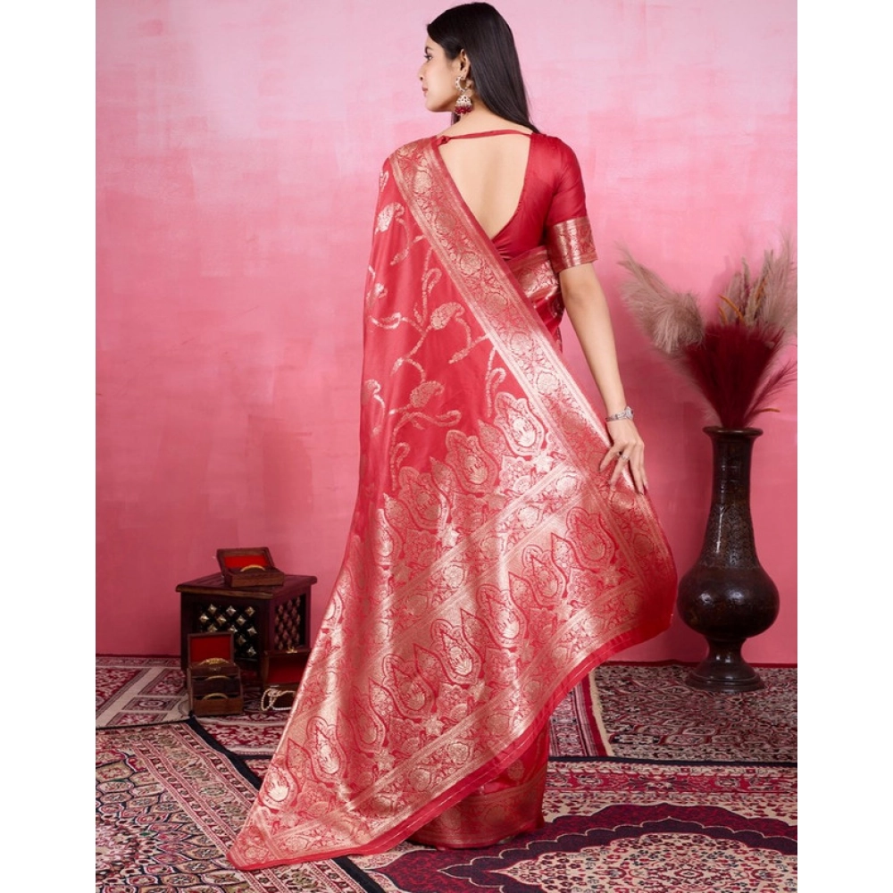 Generic Women’s Banarasi Silk Printed Saree With Unstitched Blouse 5.5Mtr (Red)