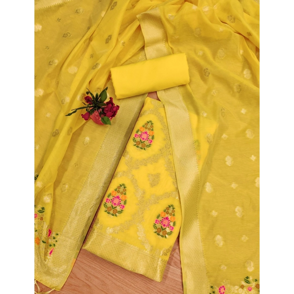Generic Women’s Banarasi Silk Printed Unstitched Salwar Suit Material With Dupatta (Yellow, 3Mtrs)