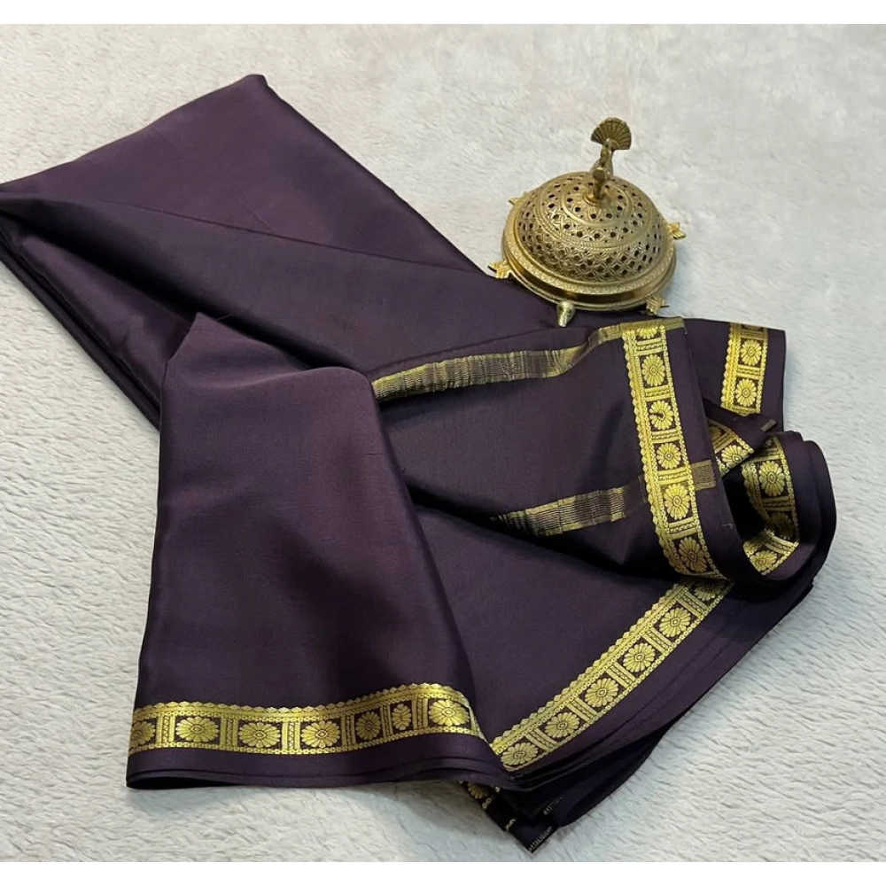 Women’s Crepe Chit Pallu Solid Saree With Unstitched Blouse 5.5Mtr