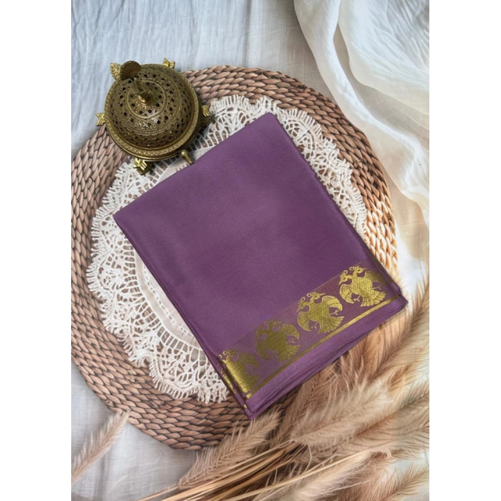 Women’s Crepe Chit Pallu Solid Saree With Unstitched Blouse 5.5Mtr