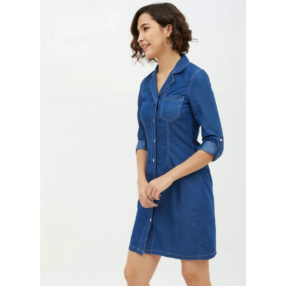 Women’s Denim Solid Long Sleeves Above Knee Dress