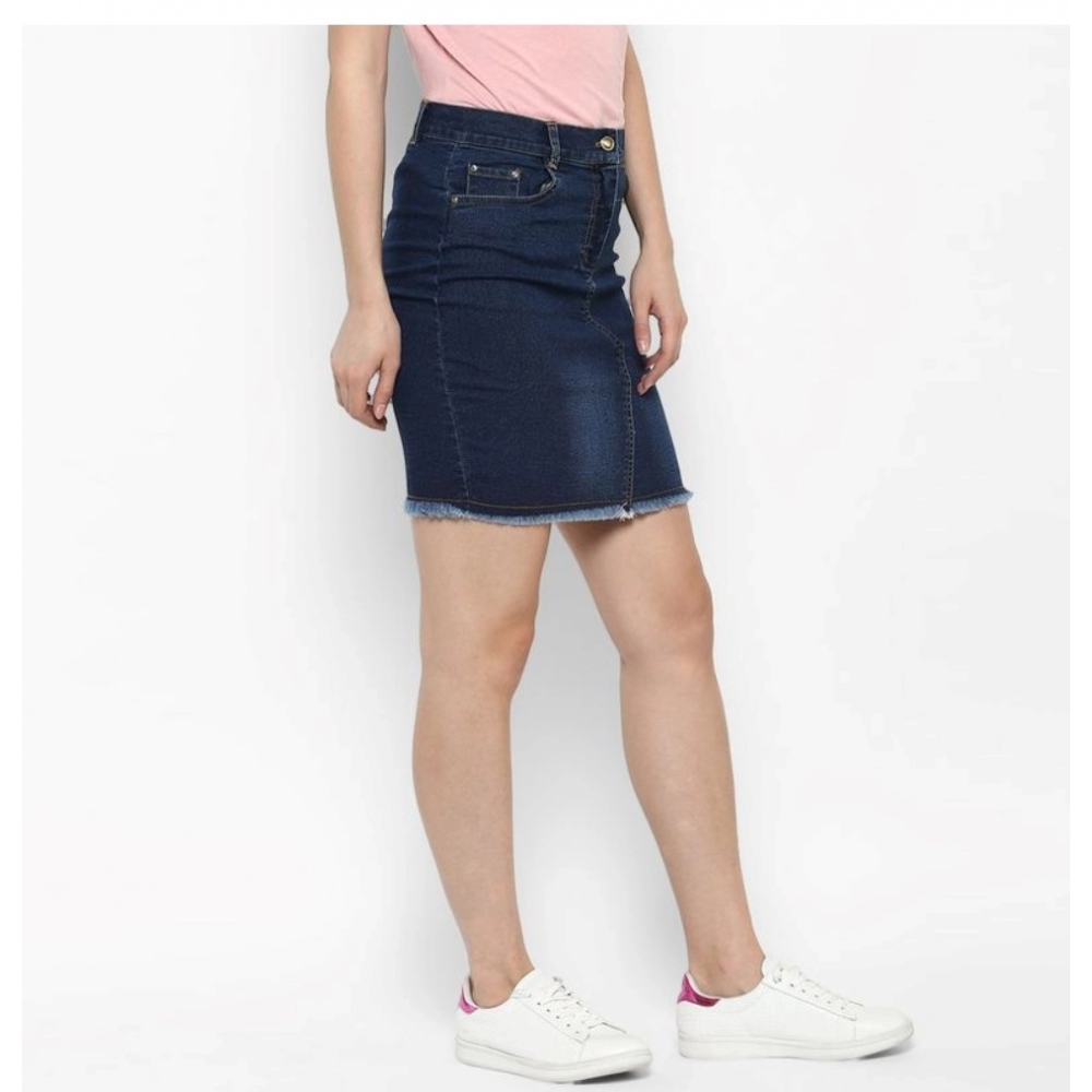 Generic Women’s Denim Stitching Pattern Buttoned Skirt (Blue)