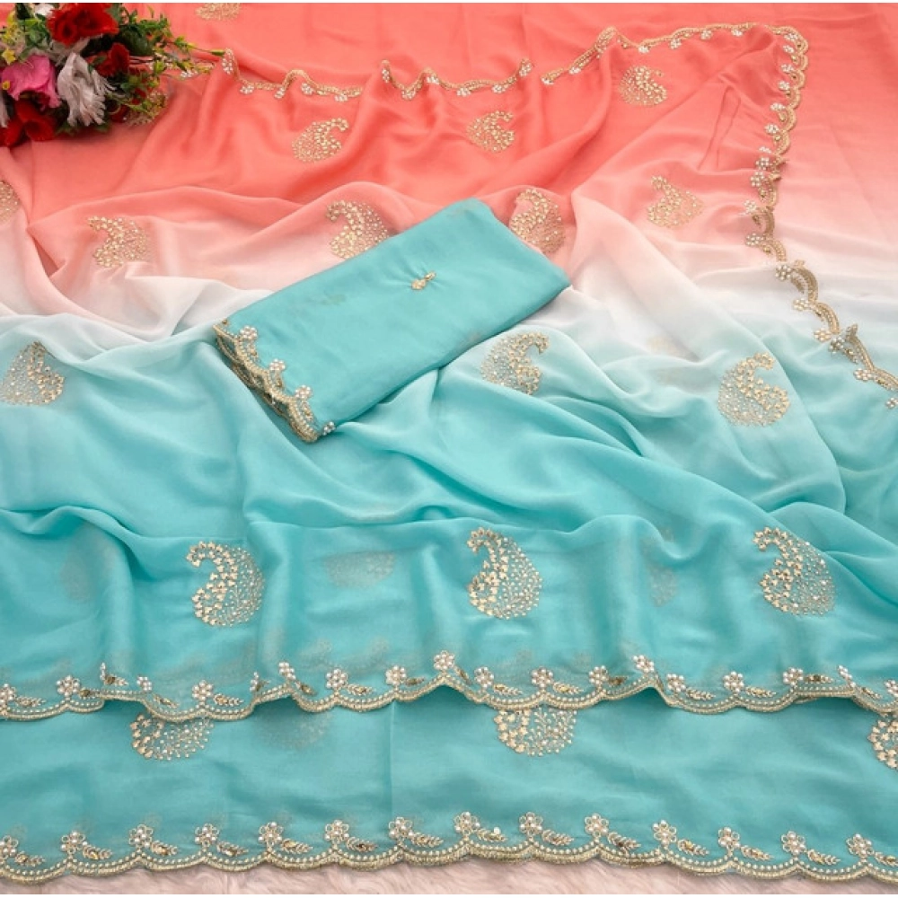 Women’s Digital Printed Geogette Saree With Unstitched Blouse