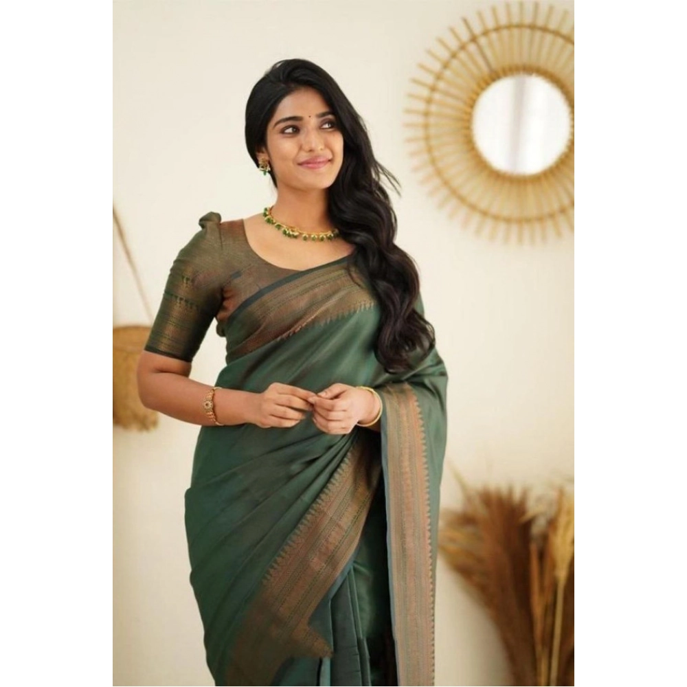 Women’s Litchi silk Printed Saree With Unstitched Blouse