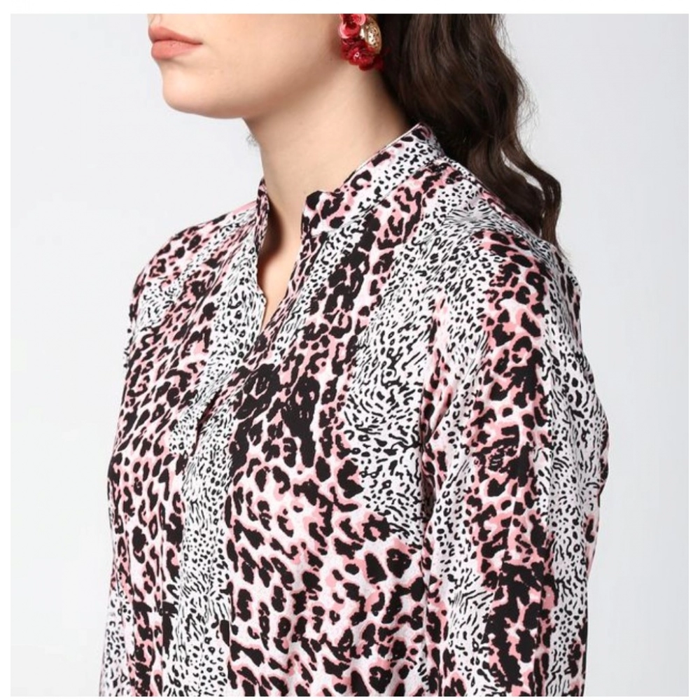 Generic Women's Polyester Animal Print Bell Sleeve Above Knee Dress (Pink - Black)Generic Women’s Polyester Animal Print Bell Sleeve Above Knee Dress (Pink – Black)