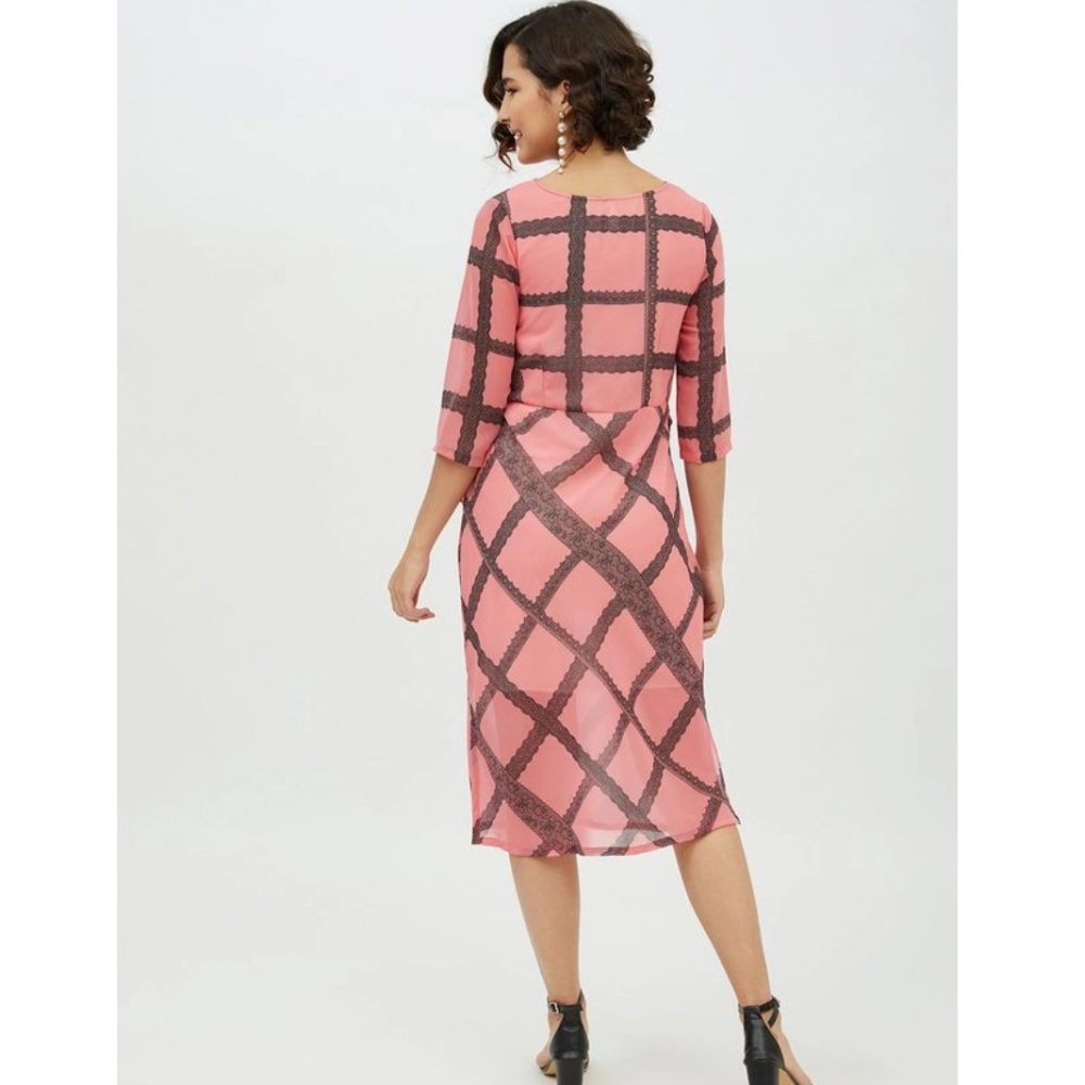 Generic Women's Polyester Checkered 3-4th Sleeves Below Knee Dress (Pink)Generic Women’s Polyester Checkered 3-4th Sleeves Below Knee Dress (Pink)