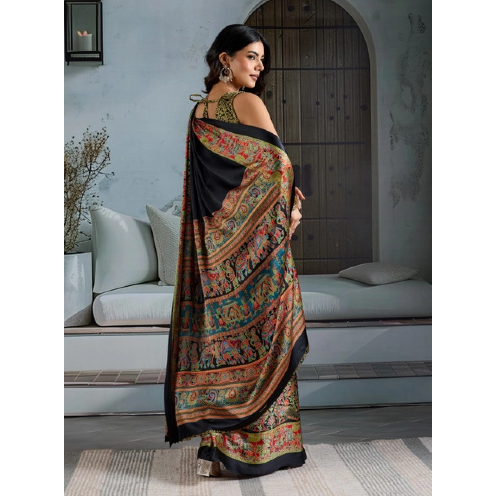 Women’s Satin Crepe Printed Saree With Unstitched Blouse 5.5Mtr