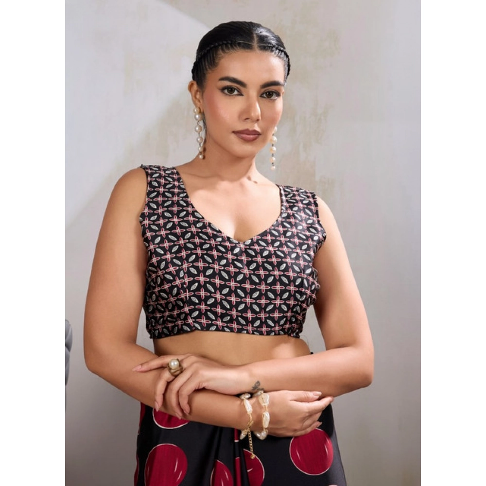 Women’s Satin Crepe Printed Saree With Unstitched Blouse 5.5Mtr