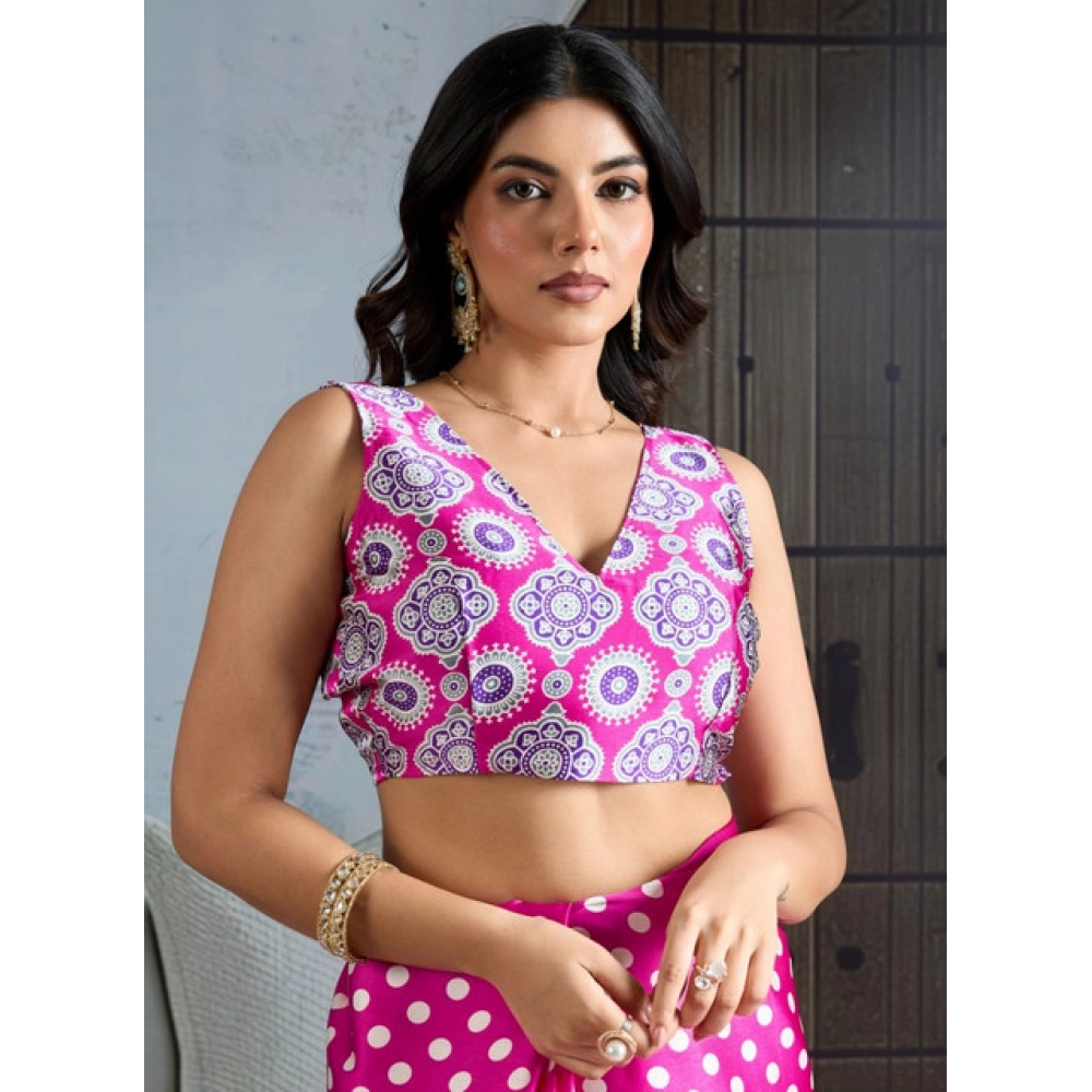 Generic Women's Satin Crepe Printed Saree With Unstitched Blouse 5.5Mtr (Pink)Generic Women’s Satin Crepe Printed Saree With Unstitched Blouse 5.5Mtr (Pink)