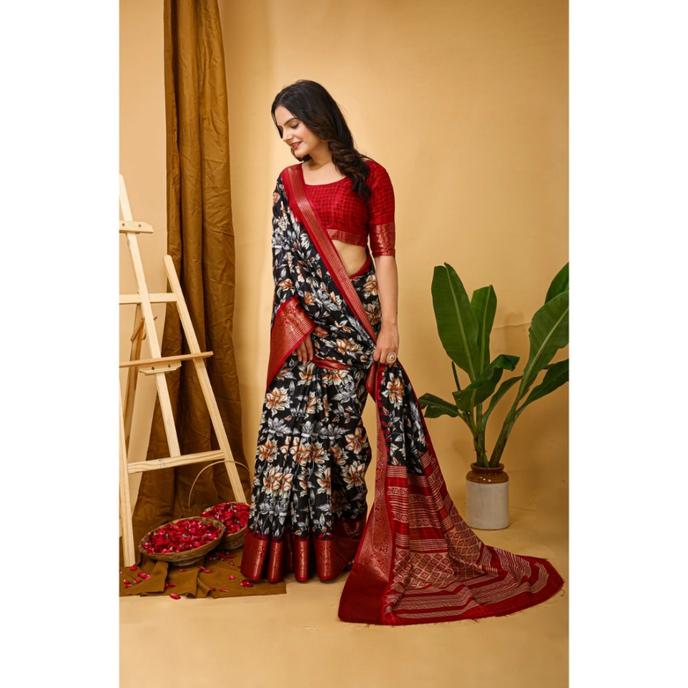 Women’s Soft Dola Cotton Kalamkari Printed Saree With Unstitched Blouse