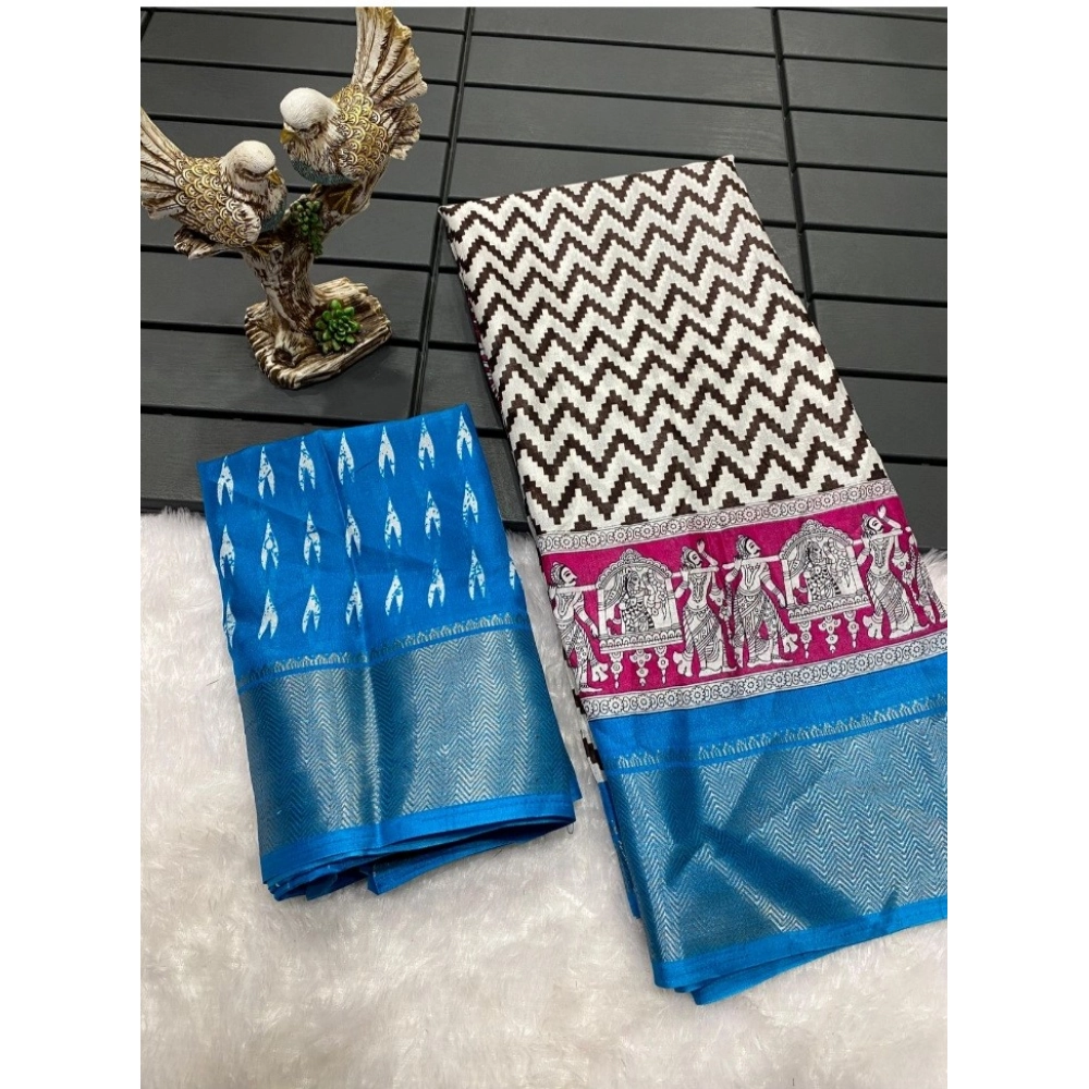Women’s Soft Dola Cotton Kalamkari Printed Saree With Unstitched Blouse