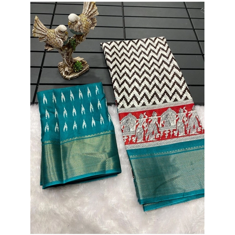 Women’s Soft Dola Cotton Kalamkari Printed Saree With Unstitched Blouse