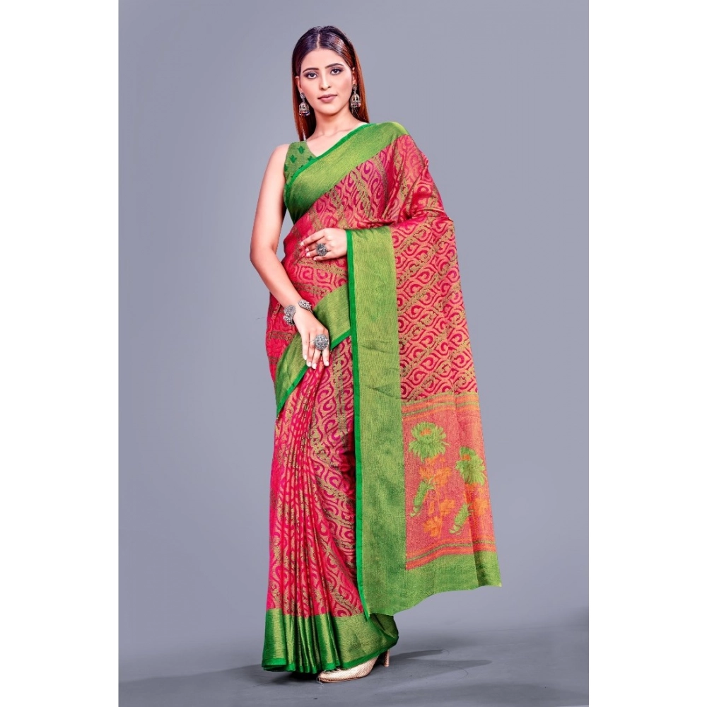Generic Women’s Viscose Rayon Printed Saree With Unstitched Blouse (Pink)